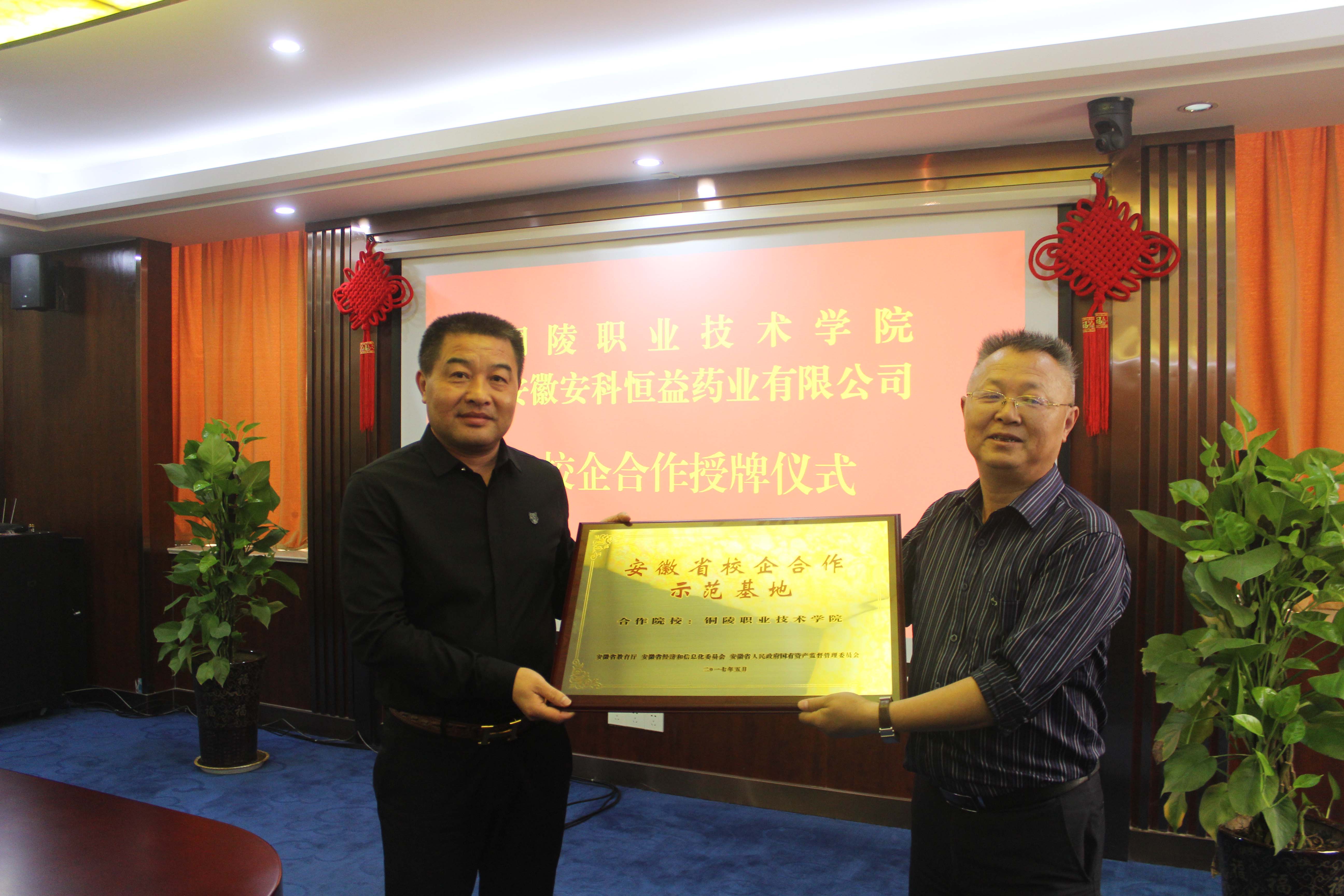 9月23日下午,我公司與銅陵職業技術學院“校企合作”授牌儀式在公司會議室舉行。這標志著公司與銅陵職業技術學院強強聯合、攜手共贏的新篇章。