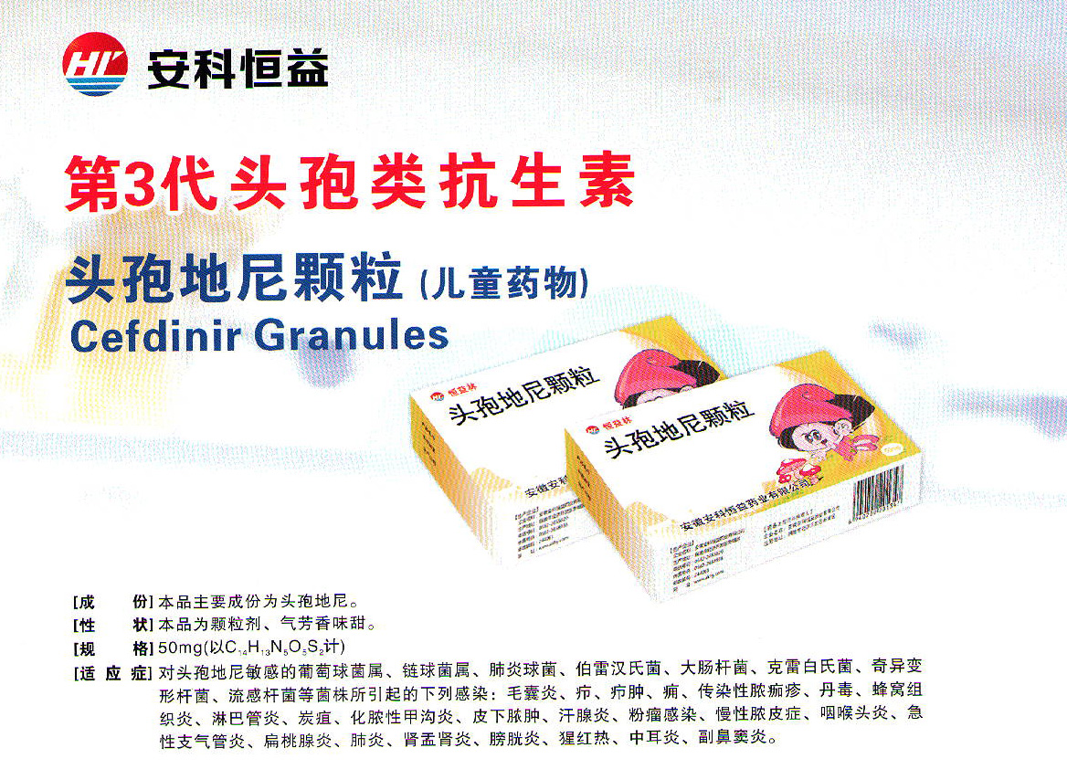 頭孢地尼屬于第3代頭孢菌素類抗生素,原研為日本藤澤藥品工業(yè)公司。本品具有抗菌譜廣、抗菌作用強、臨床療效高、毒性低、過敏反應(yīng)少等特點,該產(chǎn)品適用于對頭孢地尼敏感的葡萄球菌屬、鏈球菌屬、肺炎球菌、消化鏈球菌、丙酸桿菌、淋病奈瑟氏菌、卡他莫拉菌、大腸埃希菌、克雷伯菌屬、奇異變形桿菌、普魯威登斯菌屬、流感嗜血桿菌等菌株所引起的一系列感染。