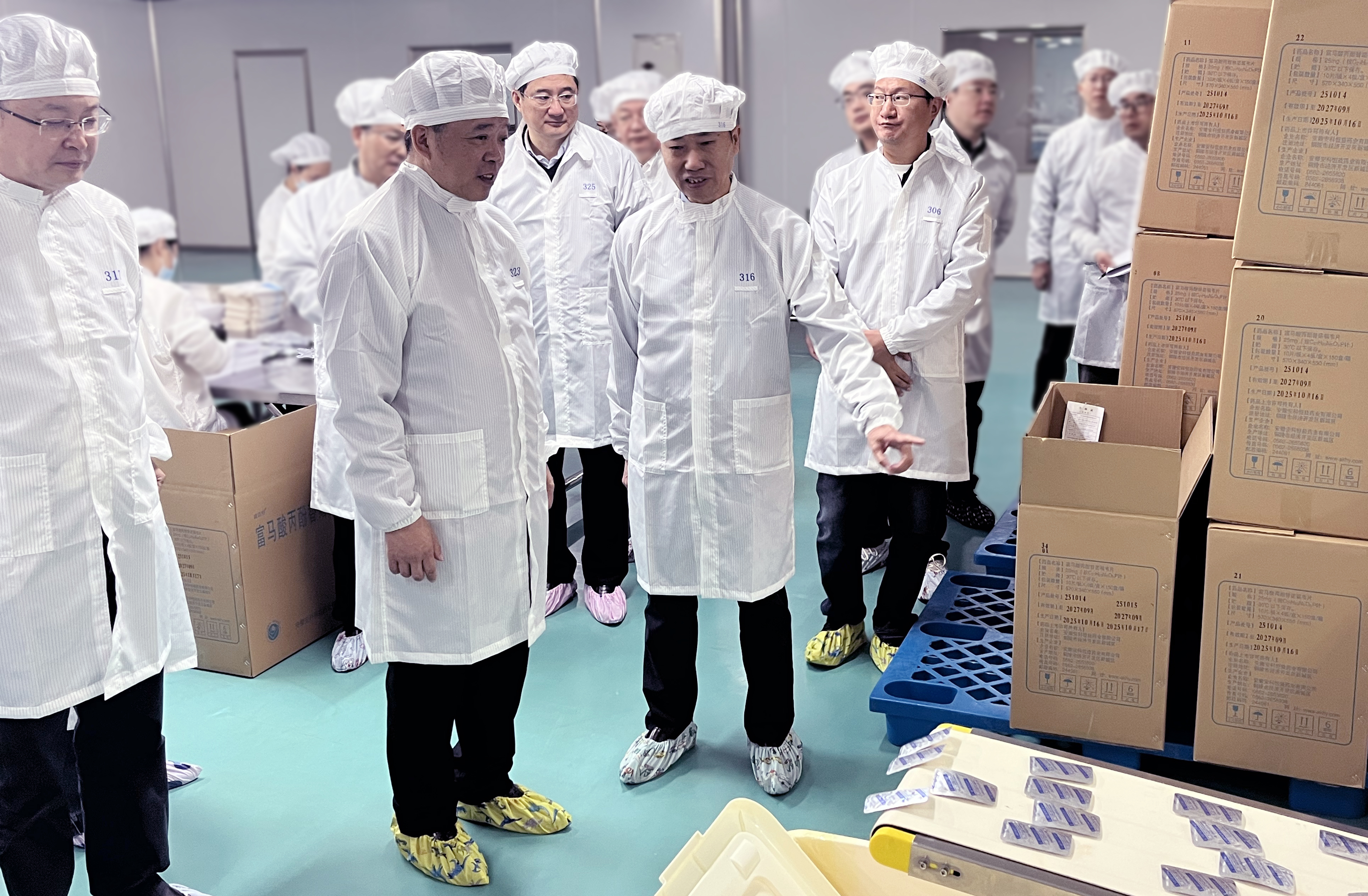 隨后,調研組在公司執行董事盛海、總經理魏躍武的陪同下,實地參觀了公司綜合生產車間,詳細了解了藥品生產工藝流程、質量管理體系及車間日常運行狀況,并就相關問題與企業人員進行了現場溝通交流。